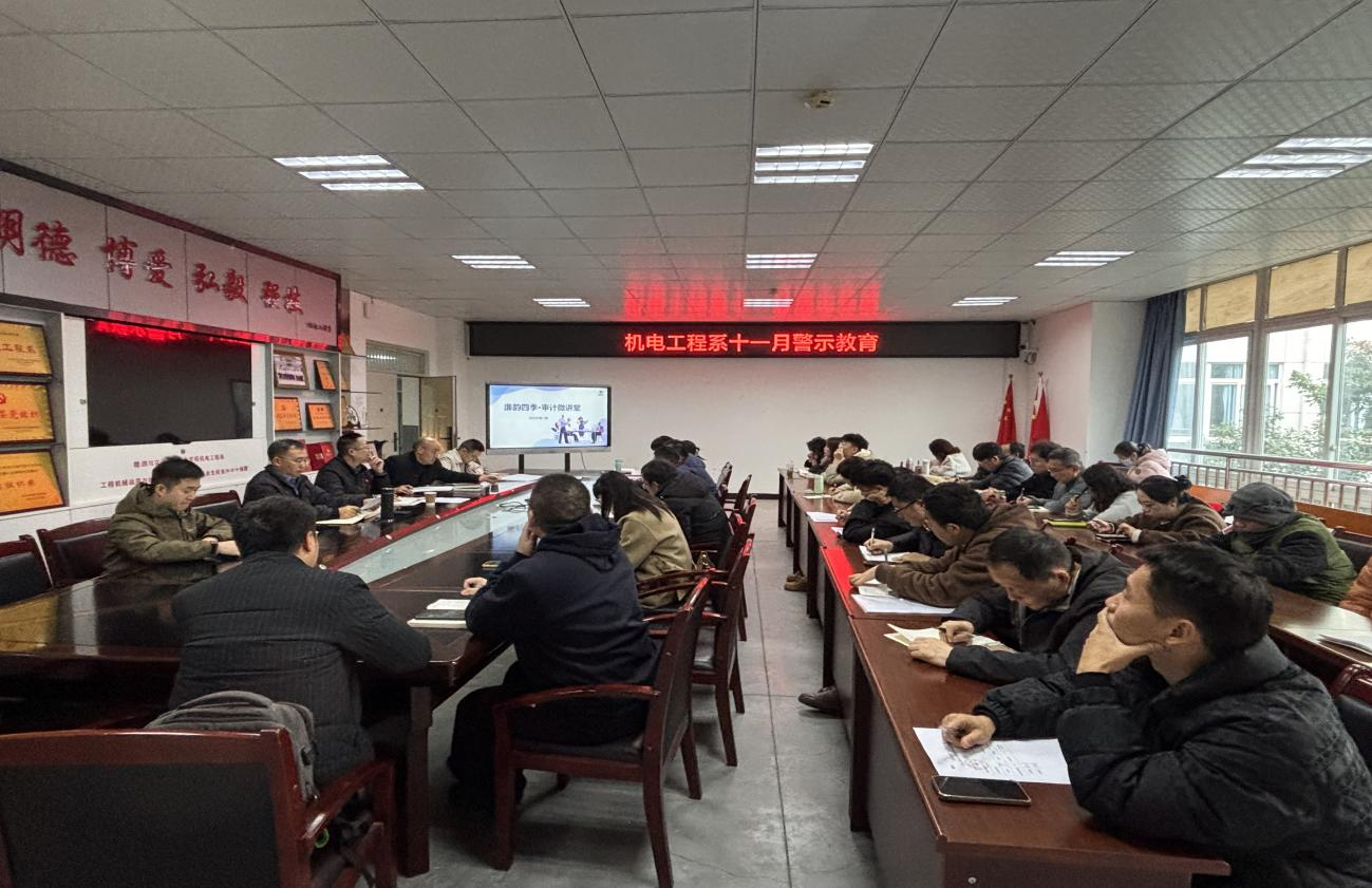 为深入学习贯彻党的二十届四中全会精神和习近平总书记近期重要讲话精神,强化党风廉政建设,凝聚发展共识,提升全系职工的政治理论水平和业务能力。11 月 26 日下午,机电工程系党总支在践行楼 B302 召开 2025 年第 13 次政治理论学习暨组织生活会。学院党委委员、副院长袁杰,组织人事处(离退休管理处)副处长王健,党委行政办公室王涛列席指导,全系党员和教职工参会,会议由系党总支书记赵林主持。