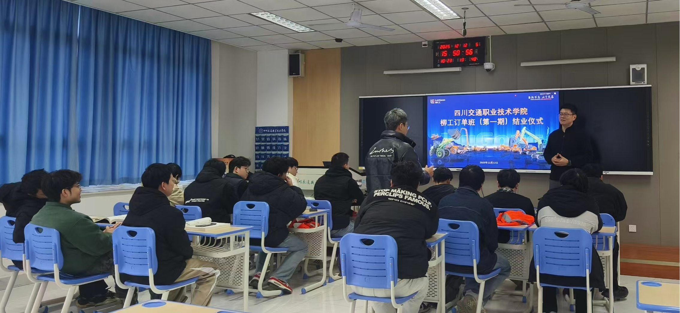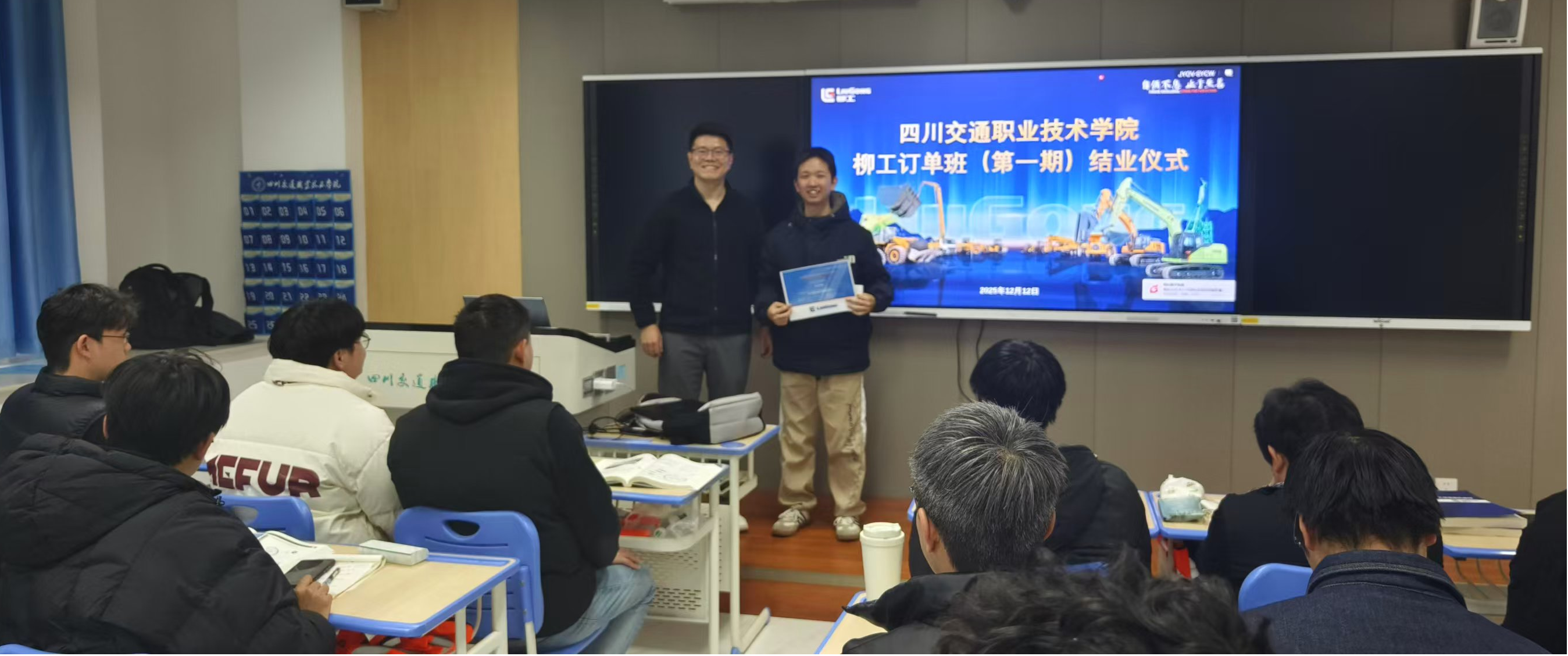 2025年12月12日,四川交通职业技术学院与广西柳工机械股份有限公司联合举办的首期“柳工订单班”顺利举行结课仪式。本次订单班的成功实施标志着双方在产教融合、协同育人道路上迈出坚实一步,为工程机械领域高素质技术技能人才的培养注入新动能。